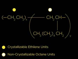 XLANCE® is a polyolefin-based elastic yarn. More specifically, it is based on copolymers of crystallizable ethylene and non-crystallizable 1-octene monomers. These copolymers, at the solid state, build an elastomeric network, where the crystallites serve as reinforcements and act as physical crosslinks to connect the flexible amorphous chains.