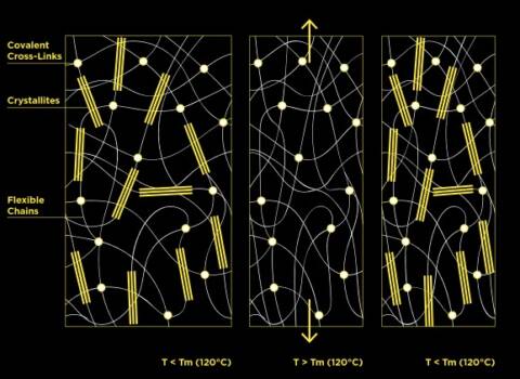 After spinning, XLANCE® undergoes a process to form covalent crosslinks, with the aim to provide the fiber extra thermal stability and mechanical integrity beyond the crystal melting point (i.e. 120°C). Unlike the covalent crosslinks, which are permanent in nature, the crystallites serve as thermally reversible links: at temperatures above their melting point (i.e., 120°C), they disappear, enabling some degree of formability, and re-form upon cooling back, thus allowing fiber setting.